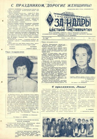 - Коллективу бухгалтерии института : [поздравление с Международным женским днем 8 марта]. — С. 1.