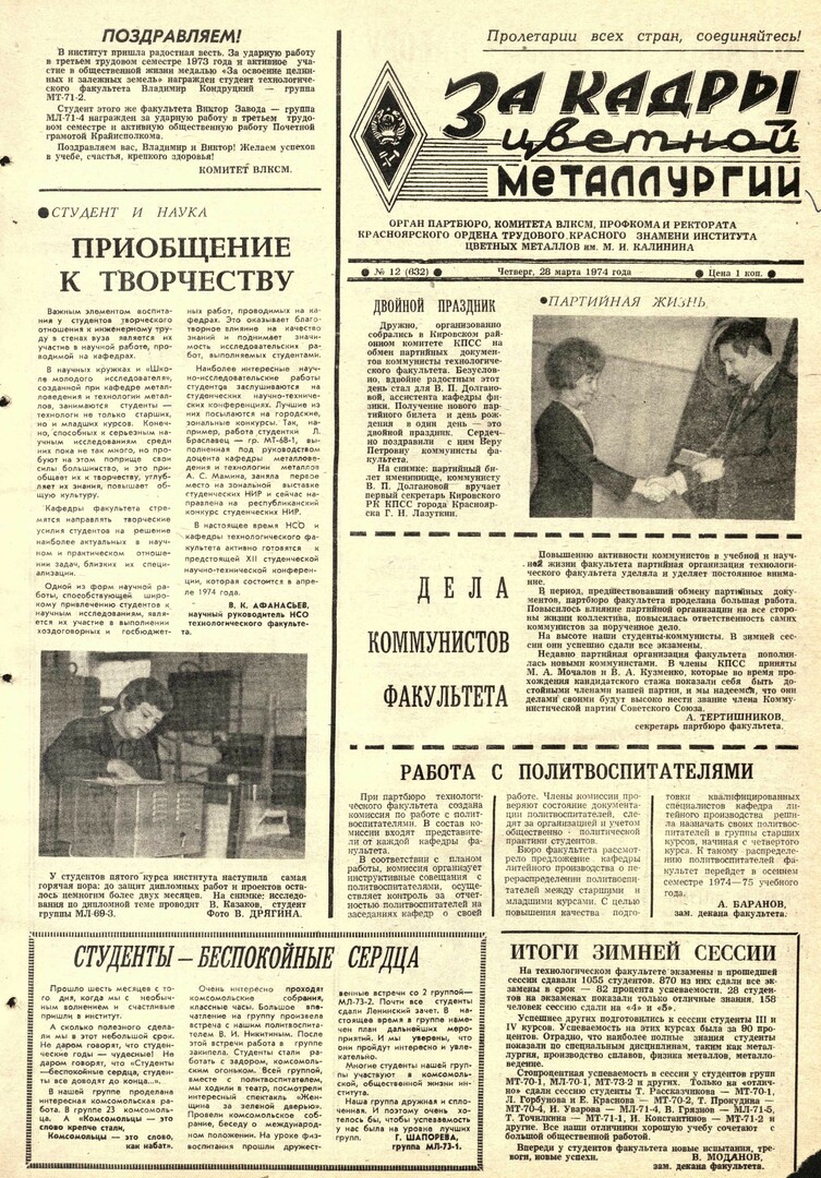 - Студенты - беспокойные сердца : [комсомольская работа в гр. МЛ-73-1]. — С. 1.