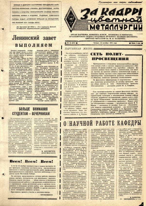 - Ленинский завет выполняем : [комсорг гр. МЭ-71-2 о результатах своей группы за учебный год]. — С. 1.