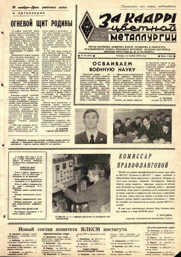 - Комиссар правофланговый : [комсорг гр. МО-72-7 - Л. Богатырева]. — С. 1.