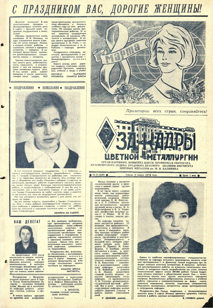 - [С праздником Вас, дорогие женщины!] : [поздравление от ректората, партбюро, профкома, комитета ВЛКСМ]. — С. 1.