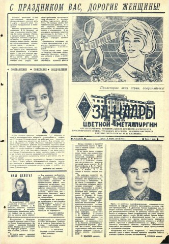 За кадры цветной металлургии : газета. 1974 г. № 9 (629) (6 марта)выпуск журнала/газеты