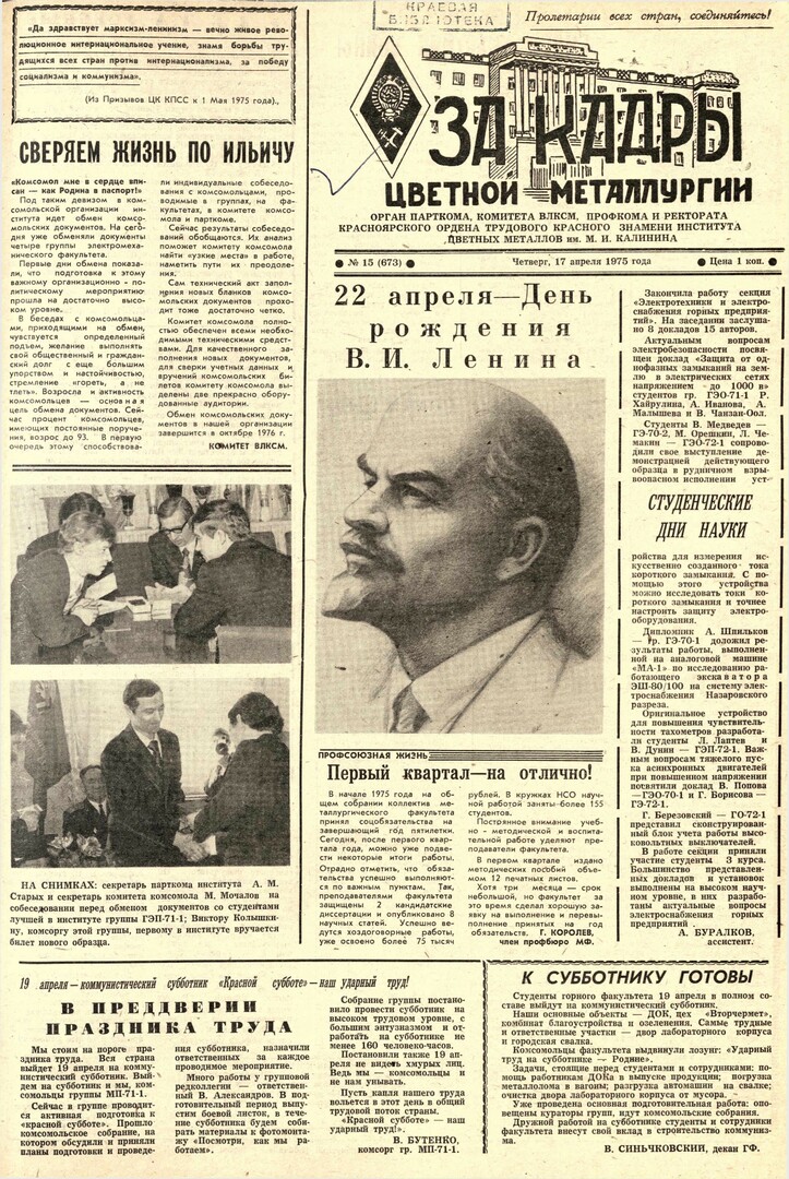 - 22 апреля - День рождения В. И. Ленина : [портрет В. И. Ленина]. — С. 1.