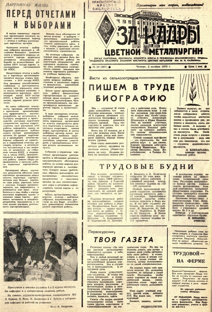 - Твоя газета : [обращение редакции газеты первокурснику]. — С. 1.