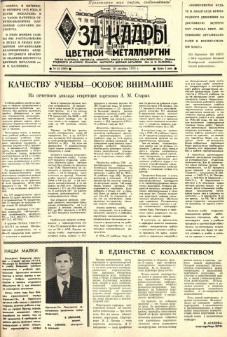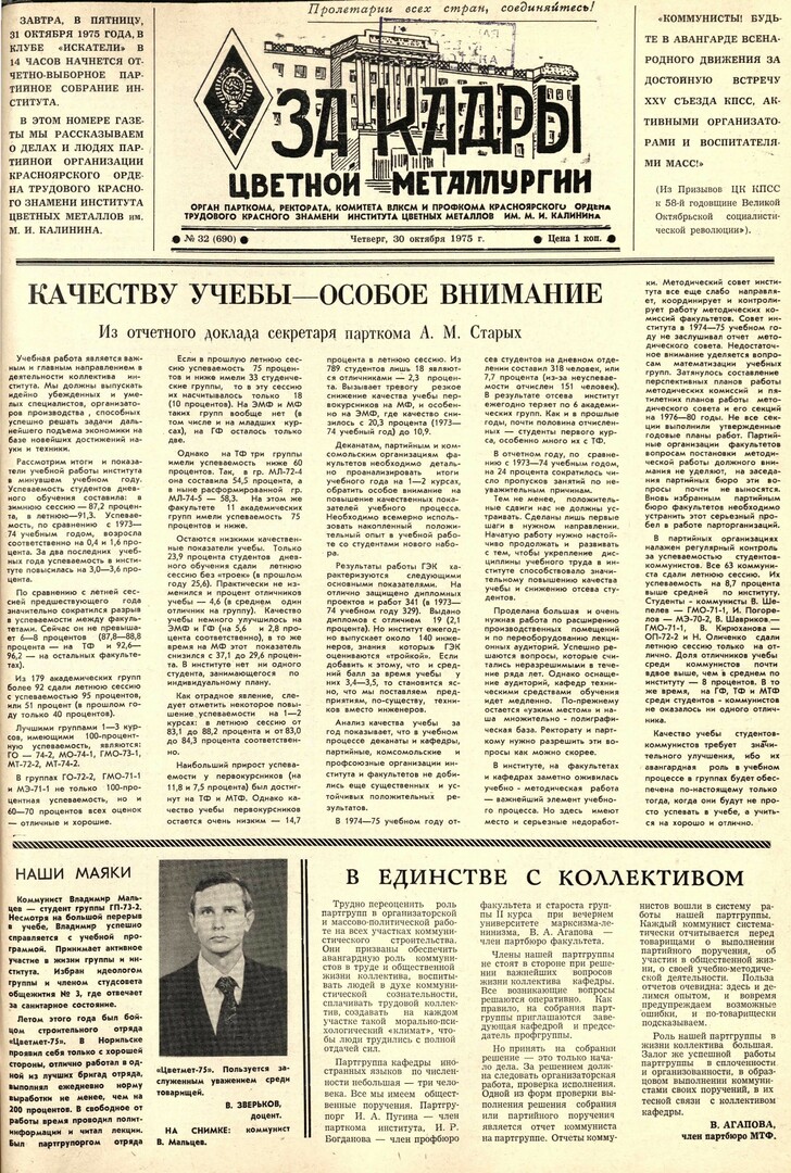 - Качеству учебы - особое внимание : Из отчетного доклада секретаря парткома А. М. Старых. — С. 1.