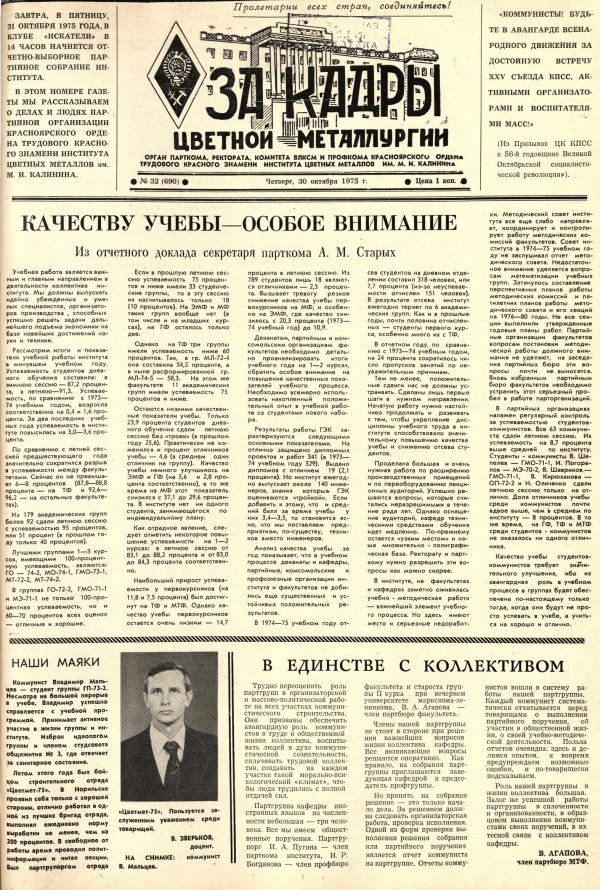 - [Объявление] : [отчетно-выборное партийное собрание института, 31 октября 1975 года в 14 часов]. — С. 1.