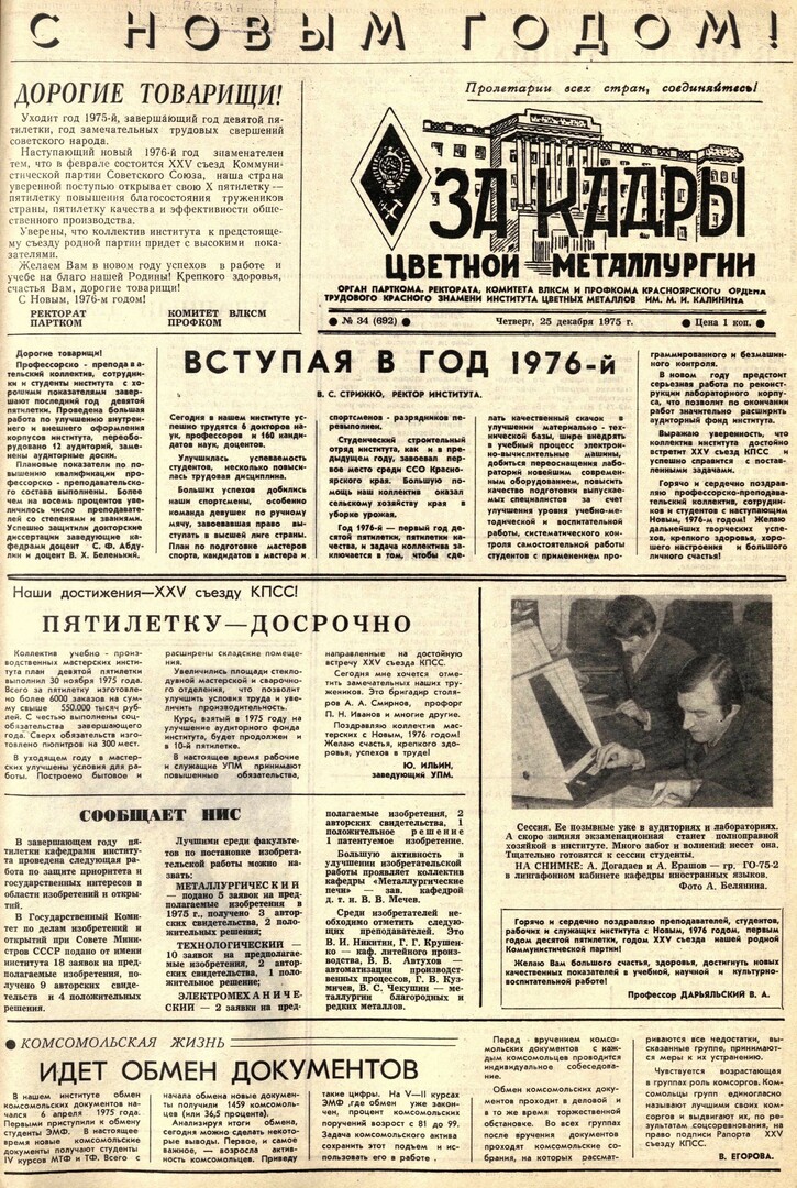 - [Поздравление с Новым годом от бывшего ректора института]. — С. 1.