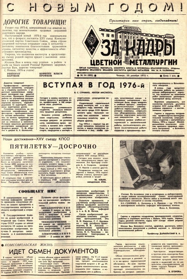 - Вступая в год 1976-й : [показатели прошедшего и задачи коллектива в 1976 году]. — С. 1.