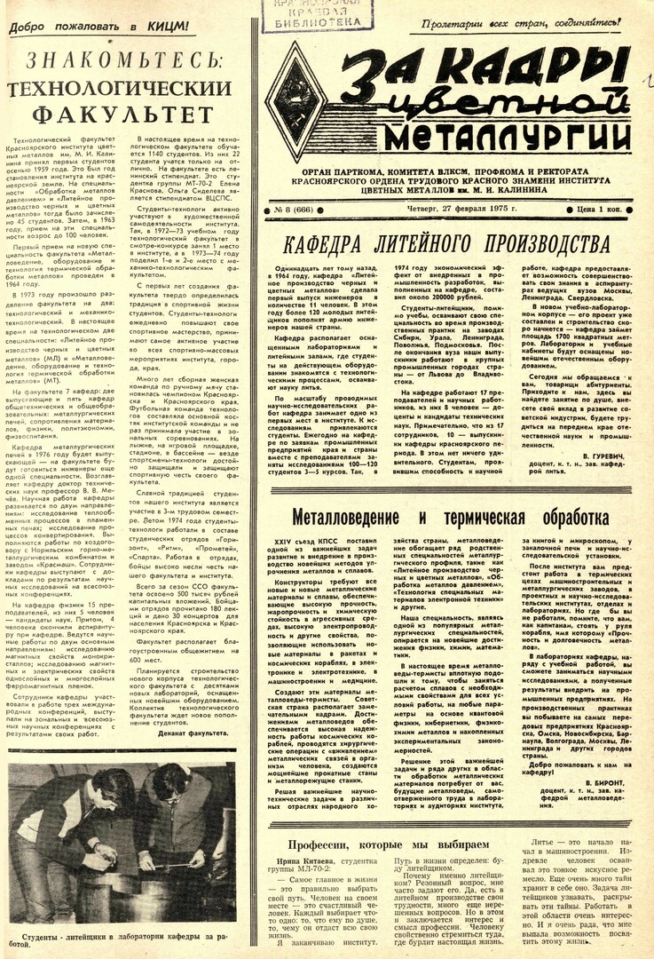 - Литейное производство - наука о металлах и сплавах : [о профессии инженера-литейщика]. — С. 2.