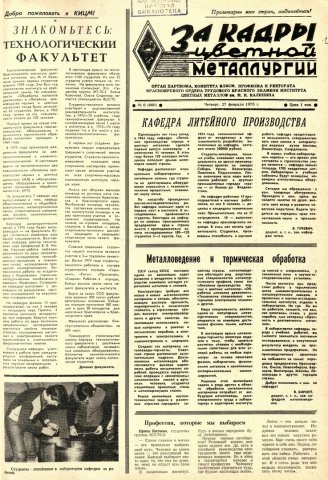 - Кафедра литейного производства : [материально-техническая база и преподавательский состав кафедры для подготовки инженеров-литейщиков]. — С. 1.