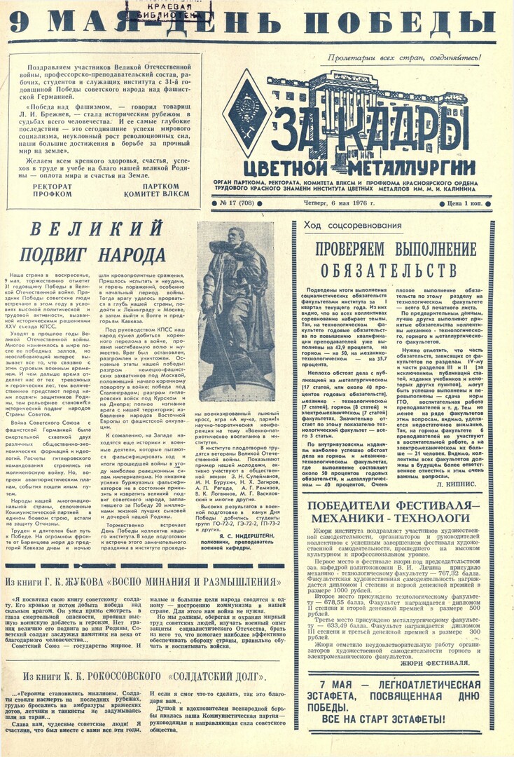 - [9 мая - День Победы] : [поздравление от ректората, парткома, профкома, комитета ВЛКСМ]. — С. 1.
