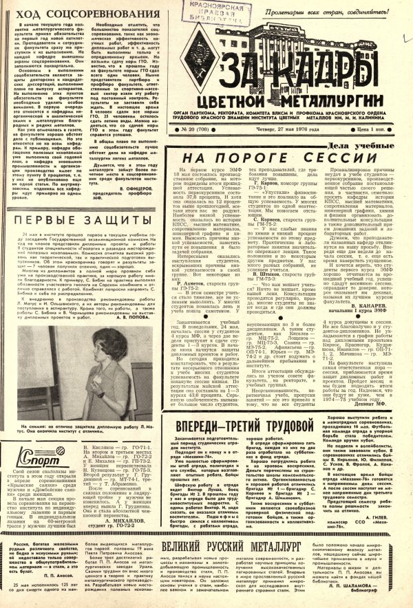 - Первые защиты : [дипломные проекты и работы студентов специальности "Геология и и разведка месторождений полезных ископаемых"]. — С. 1.
