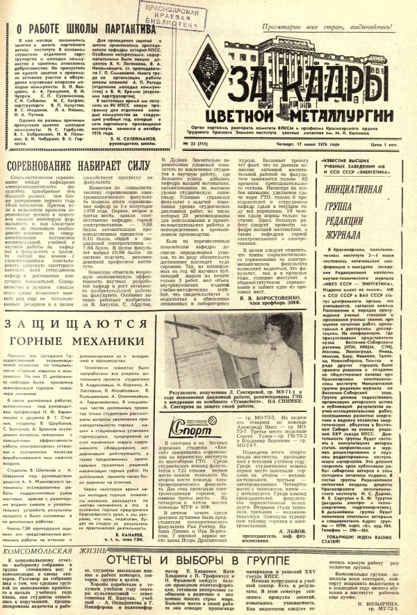 - Соревнование набирает силу : [итоги соревнования кафедр электромеханического факультета за 1-е полугодие]. — С. 1.