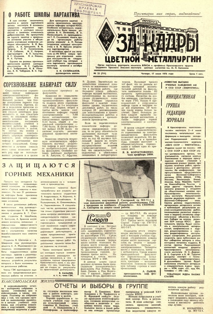 - Спорт : [результаты соревнования на первенство института по многоборью ГТО]. — С. 1.