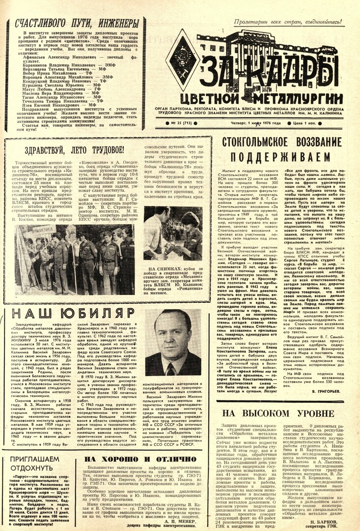 - Здравствуй, лето трудовое! : [торжественный митинг бойцов объединенного вузовского строительного отряда "Калининец-76"]. — С. 1.