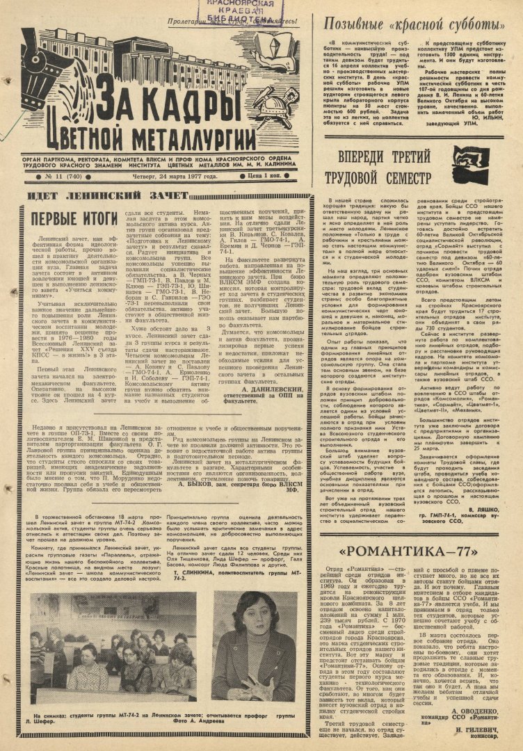 - Первые итоги : [Ленинский зачет в гр. ОП-73-1]. — С. 1.