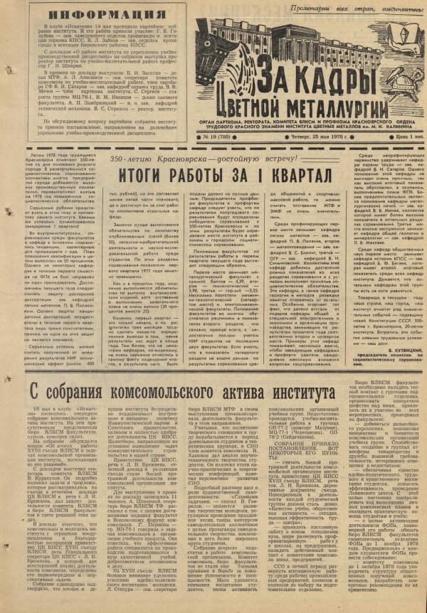 - Информация : [партийное собрание по обсуждению вопроса "О работе института по укреплению учебно-производственной дисциплины", 19 мая]. — С. 1.