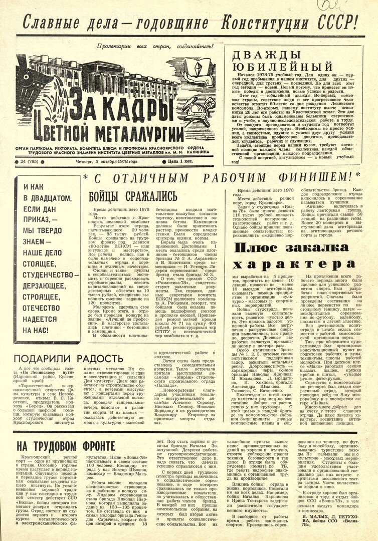 - Дважды юбилейный : [60 лет ВЛКСМ и 20 лет институту : начало нового учебного года]. — С. 1.