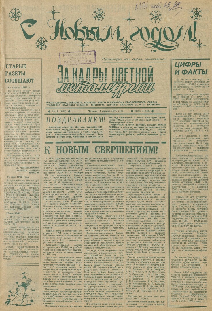 - Поздравляем! [С Новым годом!] : [поздравление коллектива от парткома, ректората, комитета ВЛКСМ, профкома]. — С. 1.
