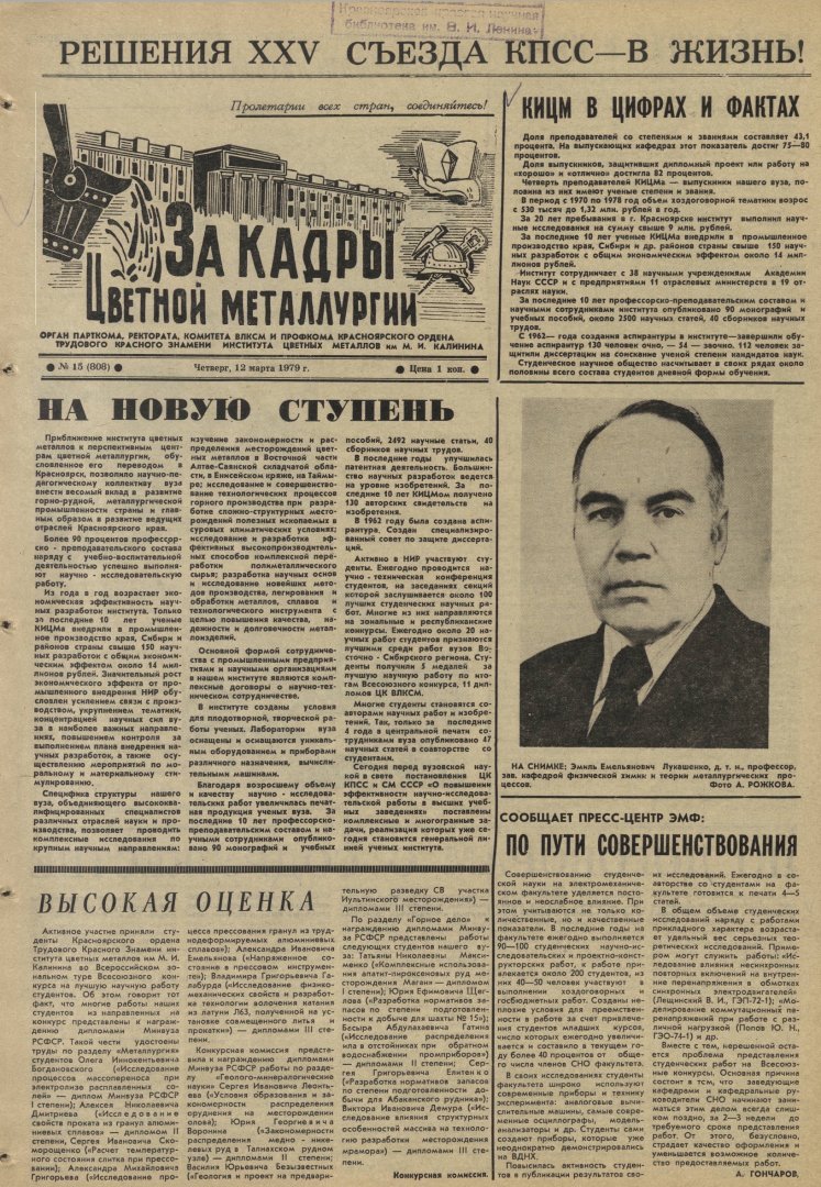 - [Фотография] : [д. т. н., профессор, зав. кафедрой физической химии и теории металлургических процессов - Э. Е. Лукашенко]. — С. 1.