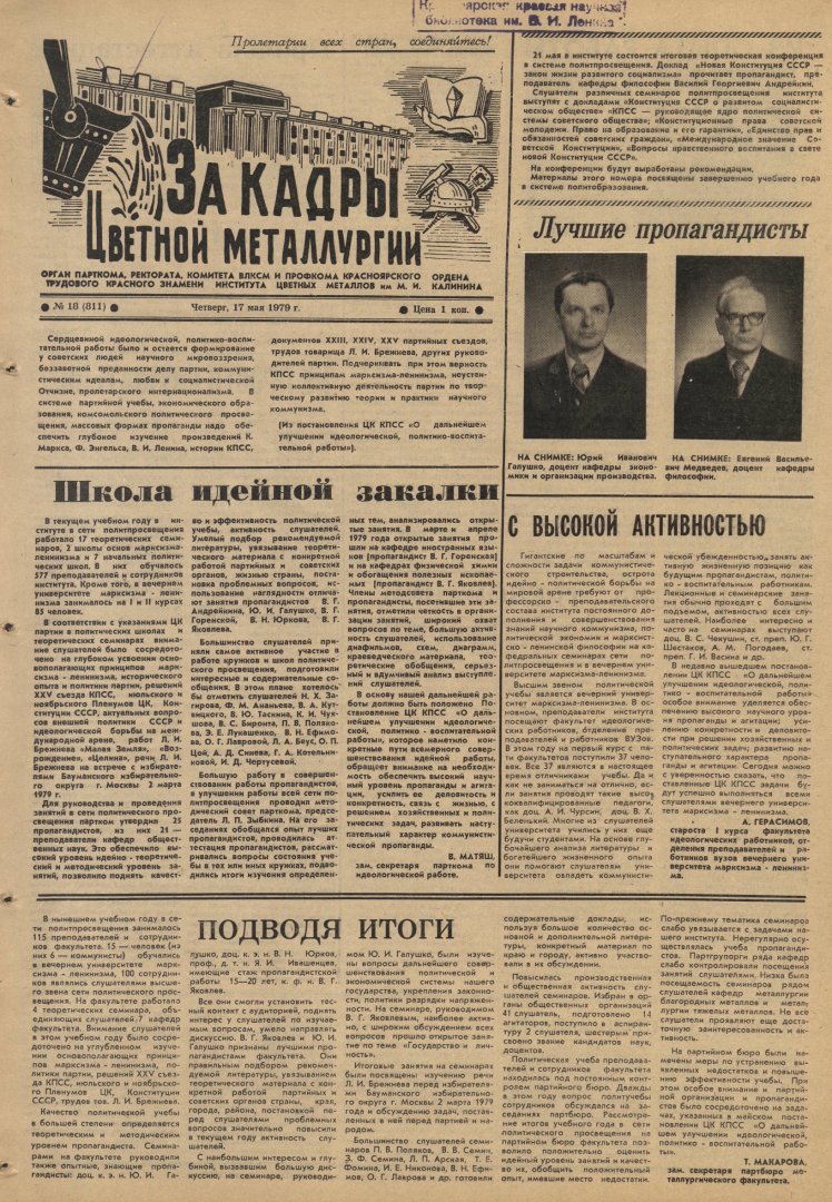 - [Семинар в системе политического образования на кафедре металлургических печей]. — С. 2.