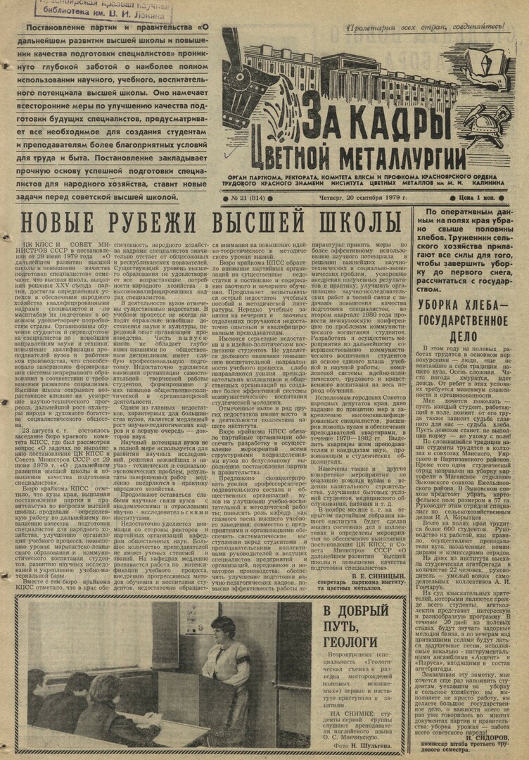 - Новые рубежи высшей школы : [вопросы, рассмотренные на заседании бюро краевого комитета КПСС (23 августа)]. — С. 1.