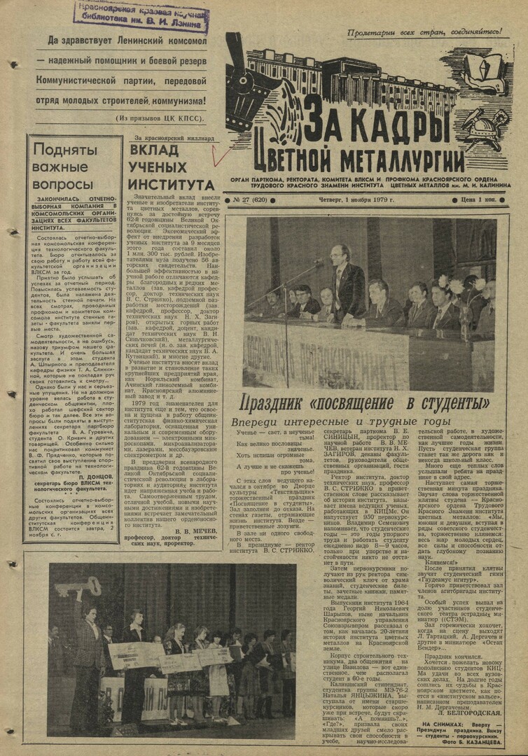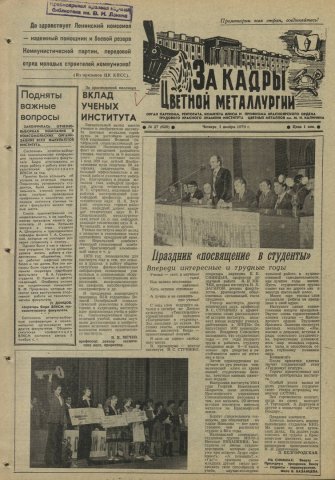За кадры цветной металлургии : газета. 1979 г. № 27 (620) (1 ноября)выпуск журнала/газеты