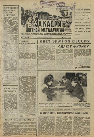 - Об итогах смотра патентно-изобретательской работы : [с общего собрания коллектива института 8 января 1980 года]. — С. 1.