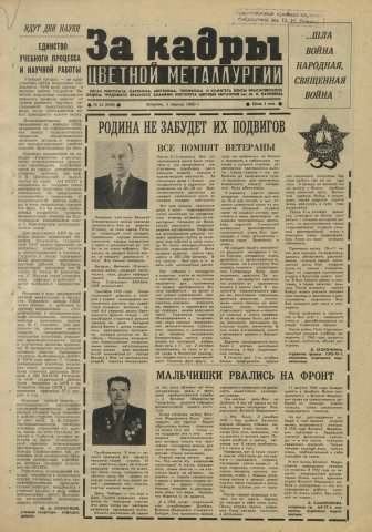 - Родина не забудет их подвигов. Все помнят ветераны : [воспоминания ветерана ВОВ, доцента кафедры горной электромеханики П. С. Балабанова : фото к заметке]. — С. 1.