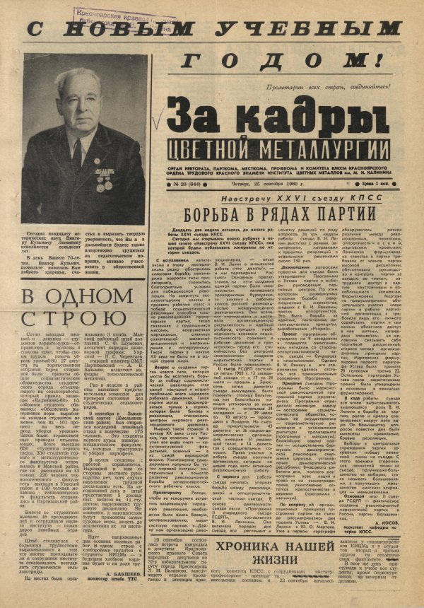 - Хроника нашей жизни : [встреча кандидата в депутаты Красноярского краевого Совета народных депутатов Л. М. Балашова с профессорско-преподавательским составом и сотрудниками института]. — С. 1.
