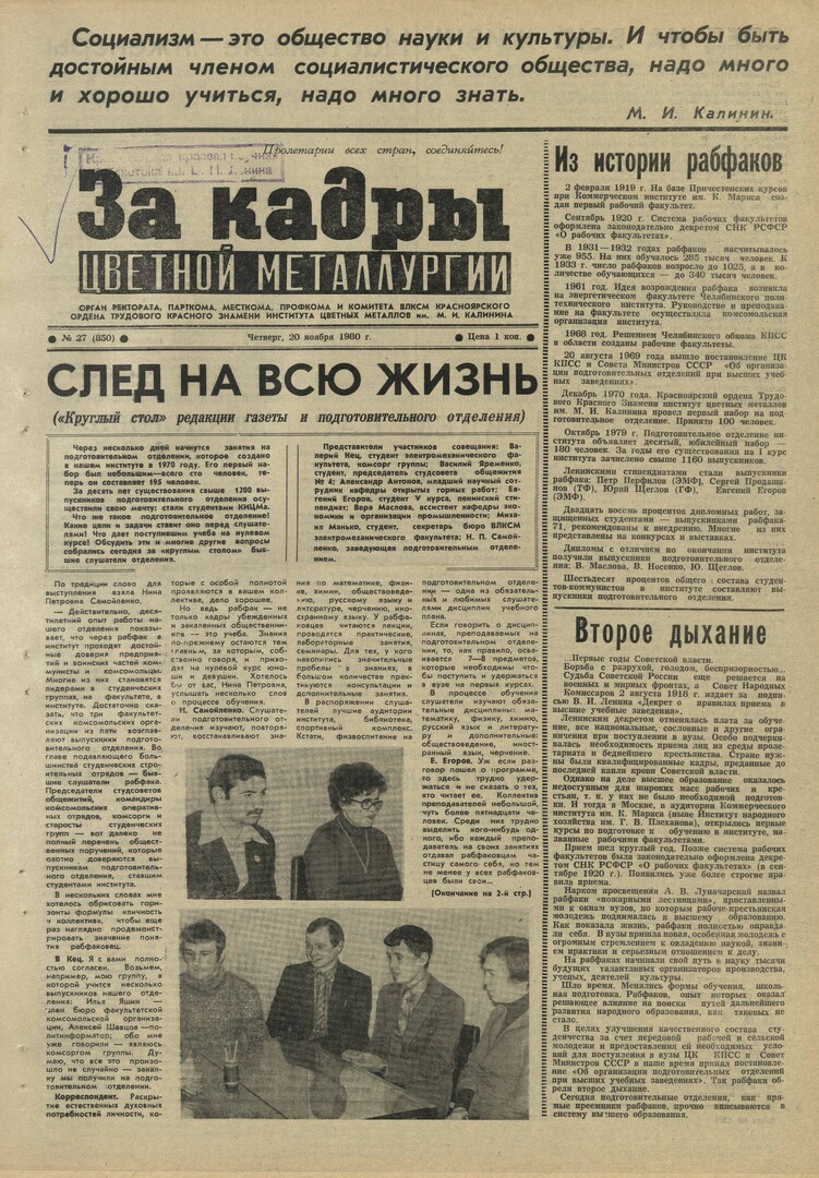 - Из истории рабфаков. — С. 1.