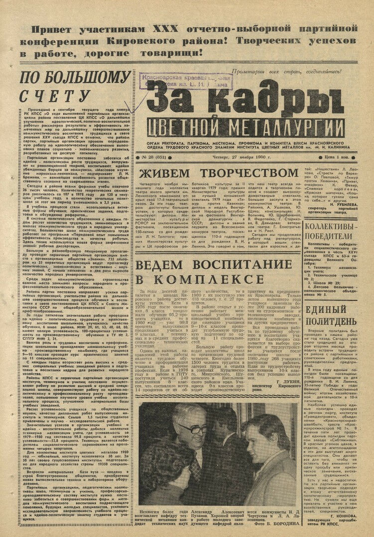 - Коллективы - победители : [соцсоревнования в честь XXVI съезда КПСС и 63-й годовщины Великого Октября]. — С. 1.