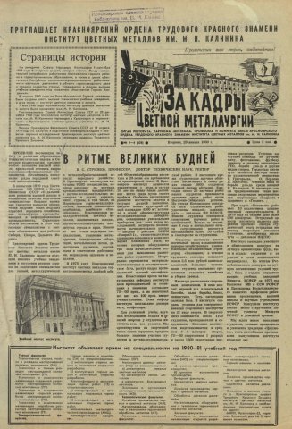 - Страницы истории : [институт цветных металлов]. — С. 1.