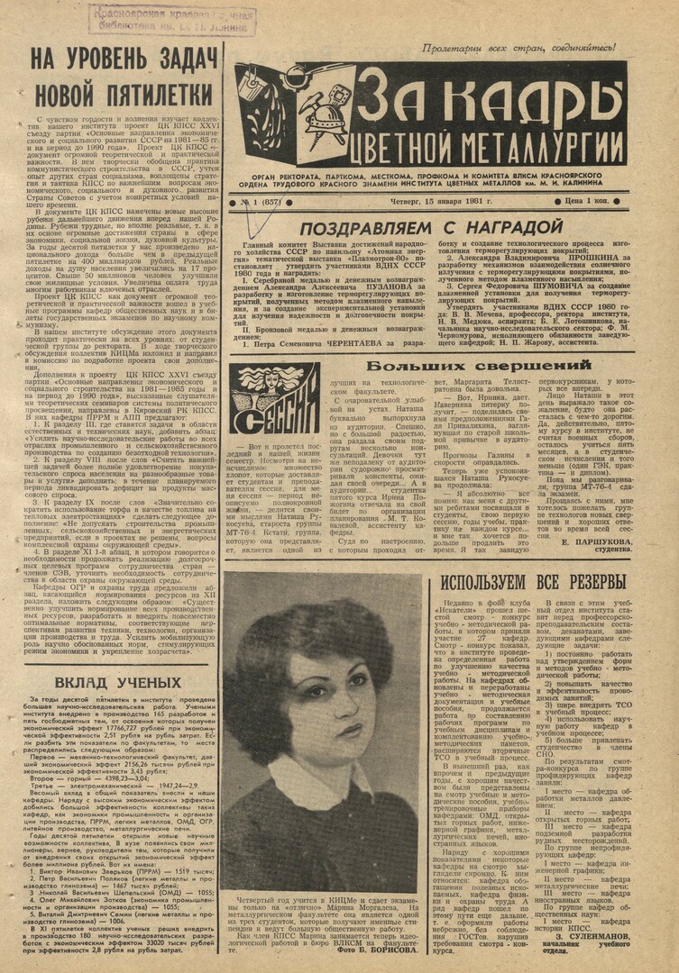 - На уровень задач новой пятилетки : [обсуждение коллективом института проекта ЦК КПСС XXVI съезду партии "Основные направления экономического и социального развития СССР на 1981—85 гг. и на период до 1990 года"]. — С. 1.