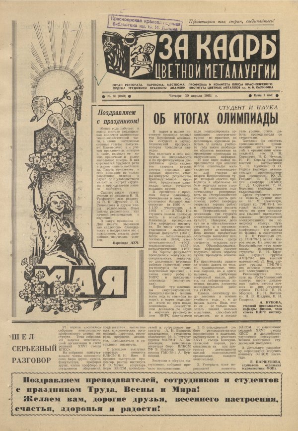 - Шел серьёзный разговор : [собрание комсомольско-профсоюзного актива института по теме "О задачах комсомольской организации в свете решений XXVI съезда КПСС"]. — С. 1.