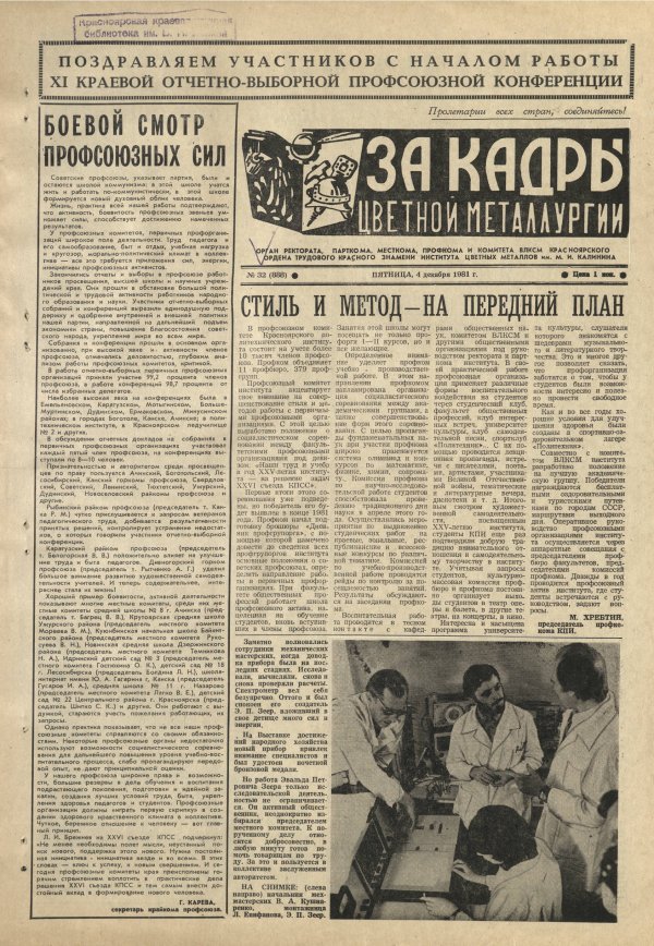 - Стиль и метод - на передний план : [о деятельности профсоюзного комитета КПИ]. — С. 1.