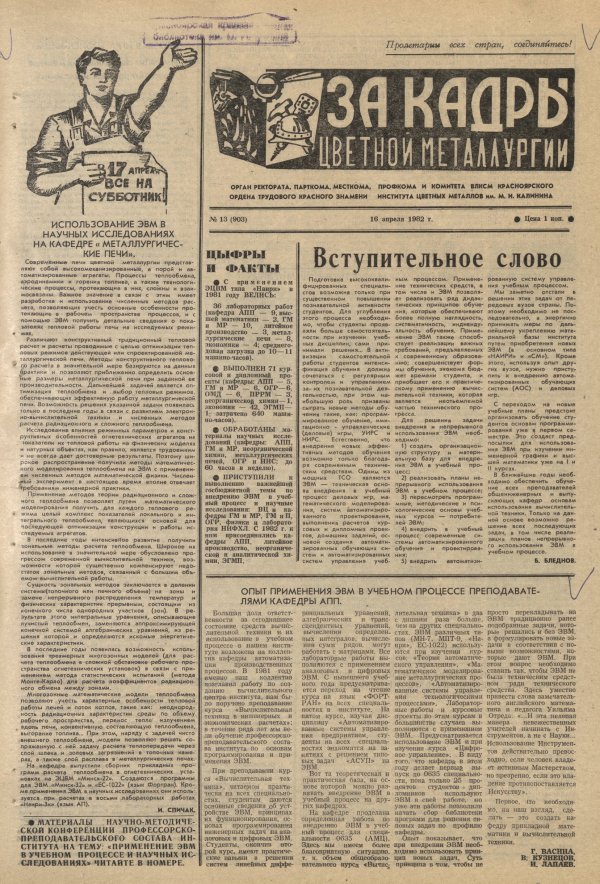 - Использование ЭВМ в научных исследованиях на кафедре "Металлургические печи" : [из материалов научно-практической конференции профессорско-преподавательского состава института]. — С. 1.
