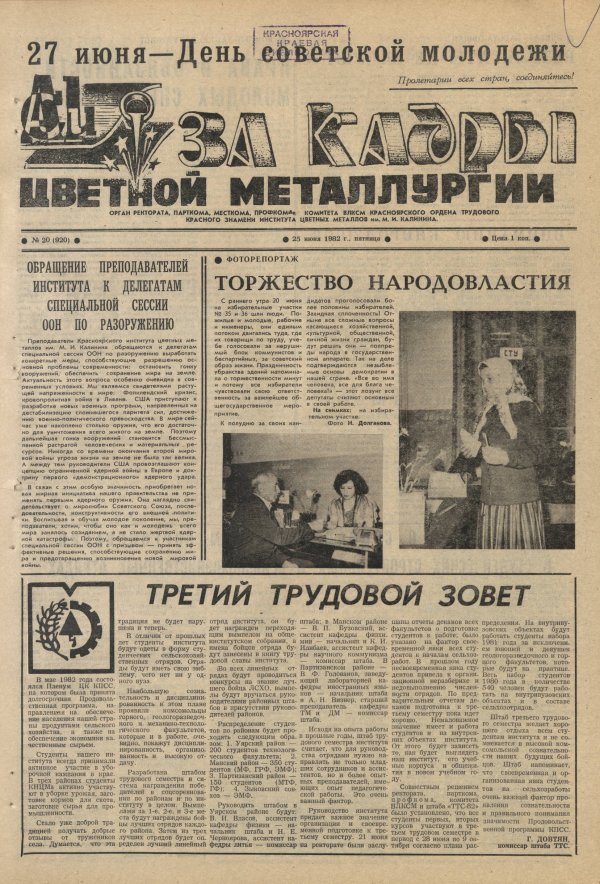 - Заявка "Цветмета" : [статья из газеты "Красноярский рабочий" за 9 июня 1982 года о победе гандболистках института]. — С. 2.