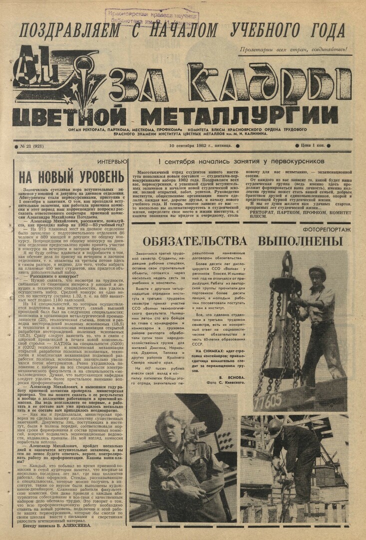 - 1 сентября начались занятия у первокурсников : [поздравления от ректората, парткома, профкома, комитета ВЛКСМ с началом новой студенческой жизни]. — С. 1.