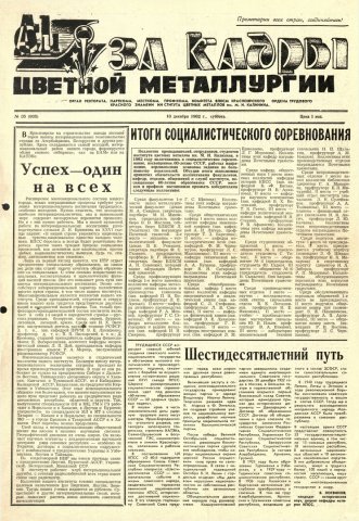 За кадры цветной металлургии : газета. 1982 г. № 35 (935) (18 декабря)выпуск журнала/газеты