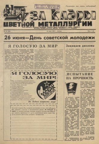 - Социалистические обязательства объединенного вузовского строительного отряда "Калининец-83" Красноярского института цветных металлов им. М. И. Калинина. — С. 2.