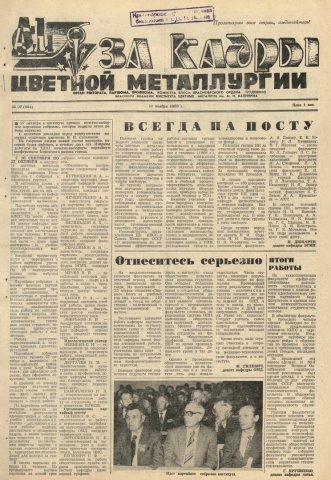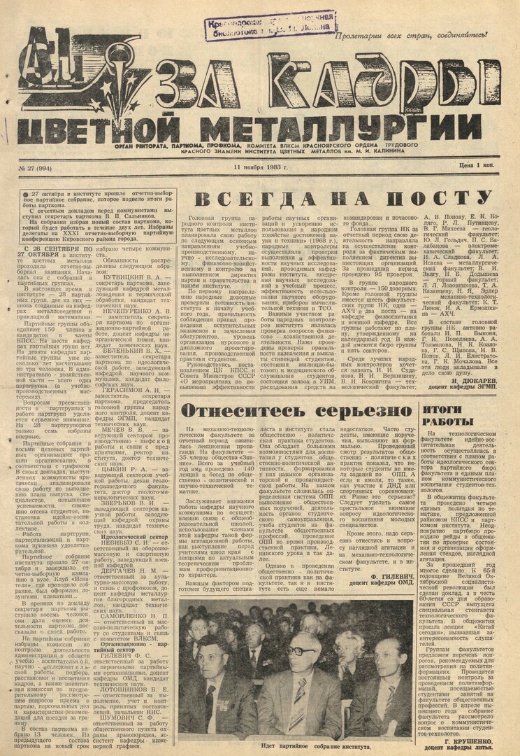 - [Отчетно-выборное партийное собрание института, 27 октября] : [итоги работы парткома]. — С. 1.