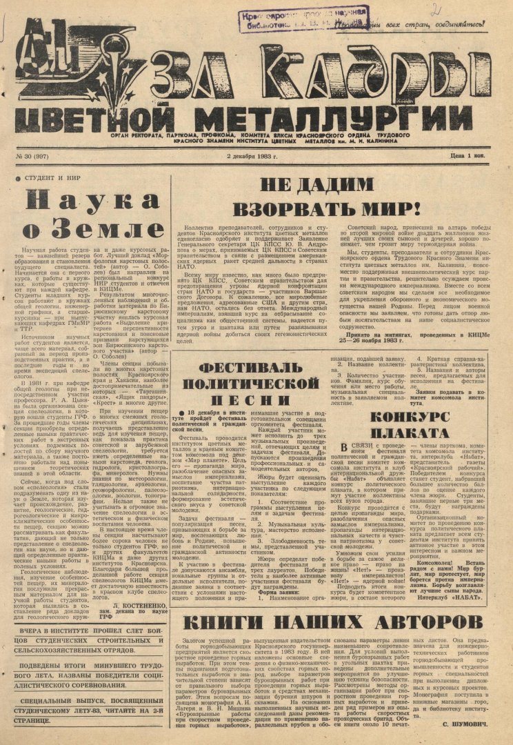 - Фестиваль политической песни : [о проведении 18 декабря фестиваля в институте : заявки на участие]. — С. 1.
