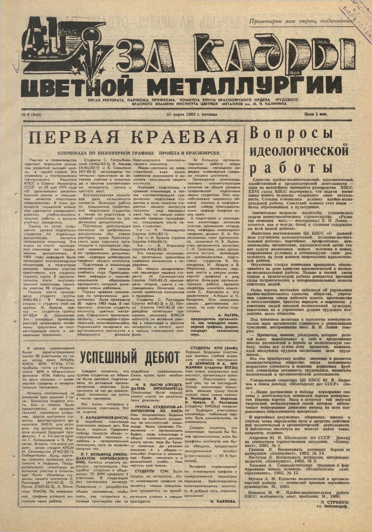 - Победители : [итоги социалистического соревнования между спортивными клубами вузов края за 1982 год]. — С. 2.