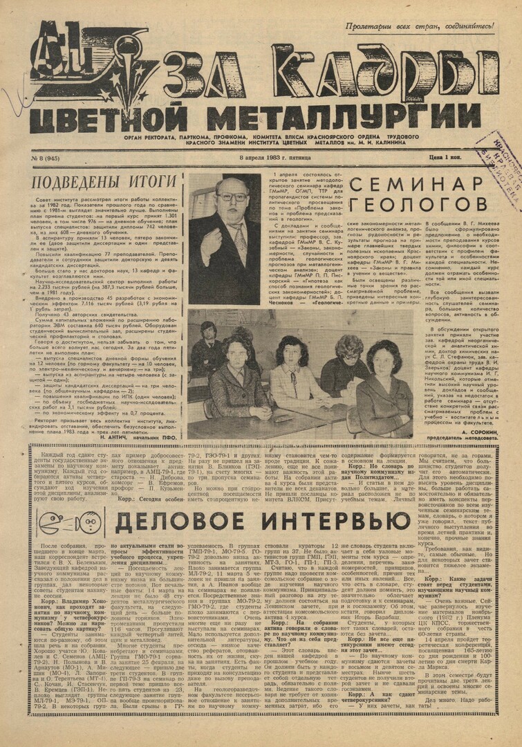 - Подведены итоги : [итоги работы коллектива за 1982 год]. — С. 1.