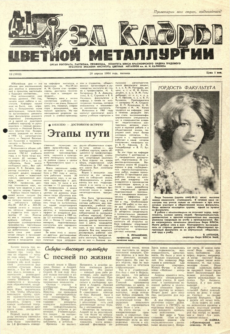 - С песней по жизни : [статья из газеты "Красноярский комсомолец" № 43]. — С. 1.