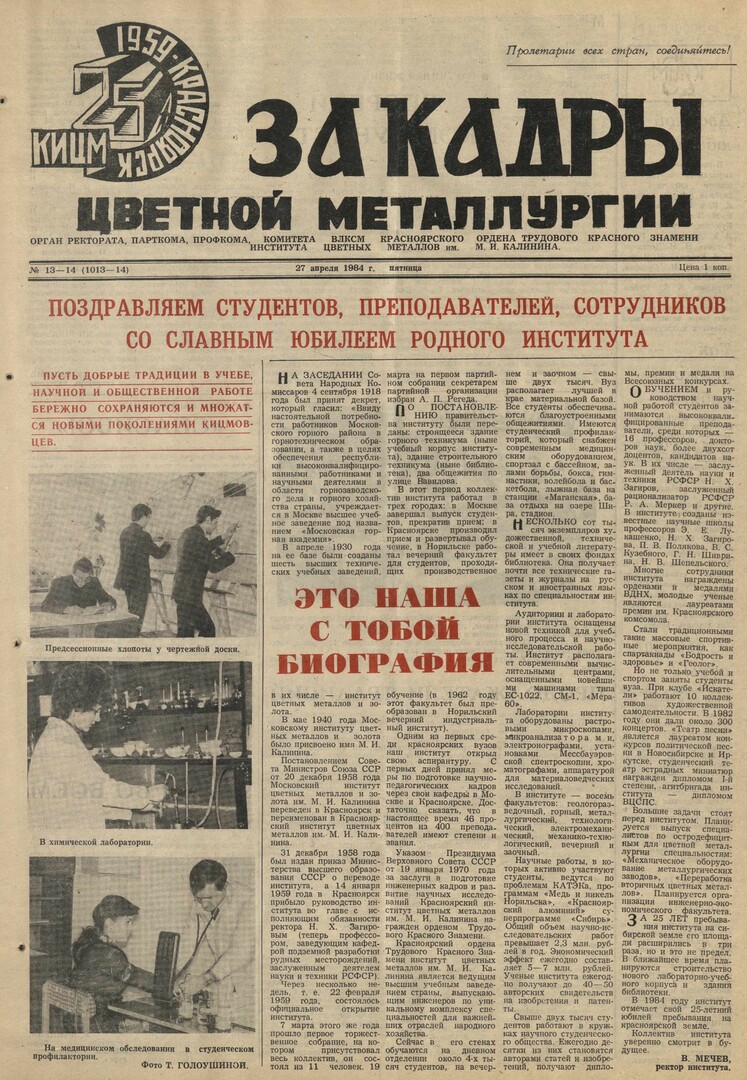 - Это наша с тобой биография : [25 лет институту цветных металлов]. — С. 1.