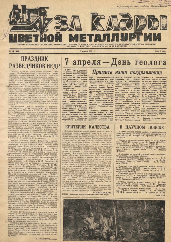 - Праздник разведчиков недр : [День геолога]. — С. 1.