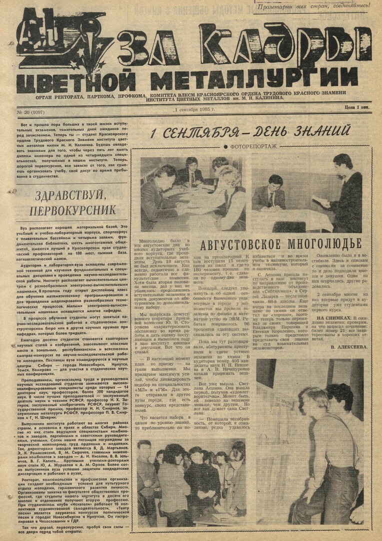 - Здравствуй, первокурсник : [с началом учебы в институте]. — С. 1.
