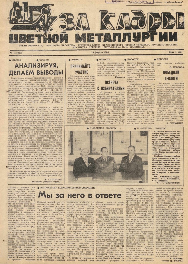 - Победили геологи : [встреча преподавателей кафедры истории КПСС с первокурсниками]. — С. 1.